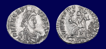 17C281 ARCADIUS AR Siliqua (2.33 gm)Trier, 383-408 A.D.