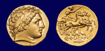 17C015 MACEDONIAN KINGDOM, PHILIP II AV Stater (8.57 gm)Colophon, posthumous issue under Philip III, 323-317 B.C.