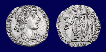 17C217 GRATIAN AR Siliqua (1.12 gm)Aquileia, 367-383 A.D.